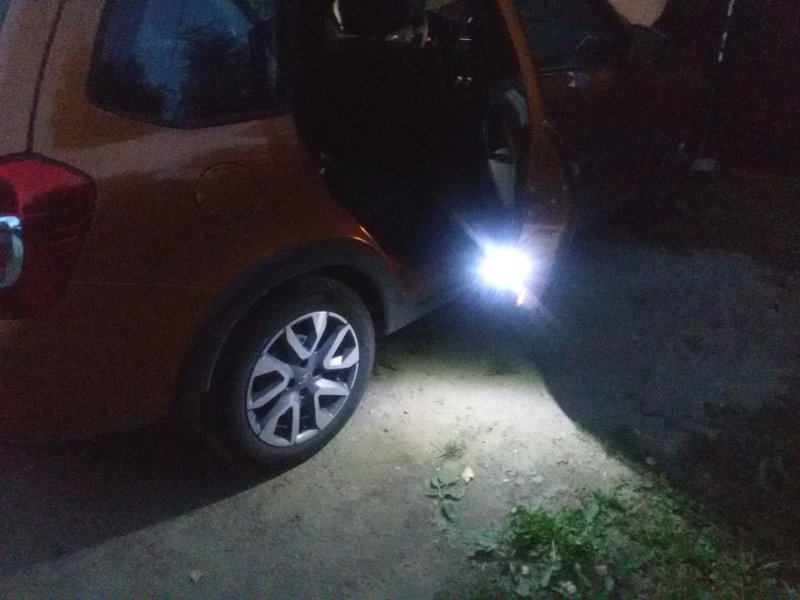 Работает, каждая дверь, подсвечивается не зависимо. Свет только при открытой. Не зависимо от положения замка зажигания...