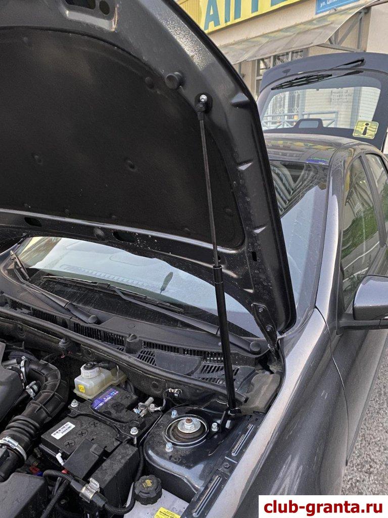 Установка газовых упоров на капот Лада Гранта